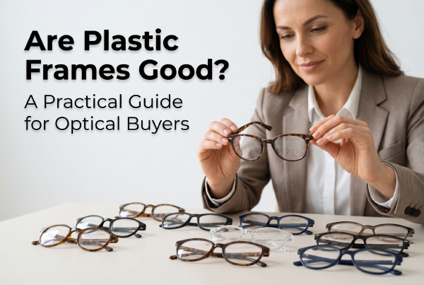 Para varejistas ópticos que compram armações de óculos no atacado, o plástico injetado representa uma oportunidade de volume. Margem saudável com preços baixos, amplo alcance demográfico e manutenção simples fazem deles uma parte valiosa de qualquer mix de produtos – desde que estejam posicionados corretamente e não sejam vendidos em excesso em atributos que não possuem.